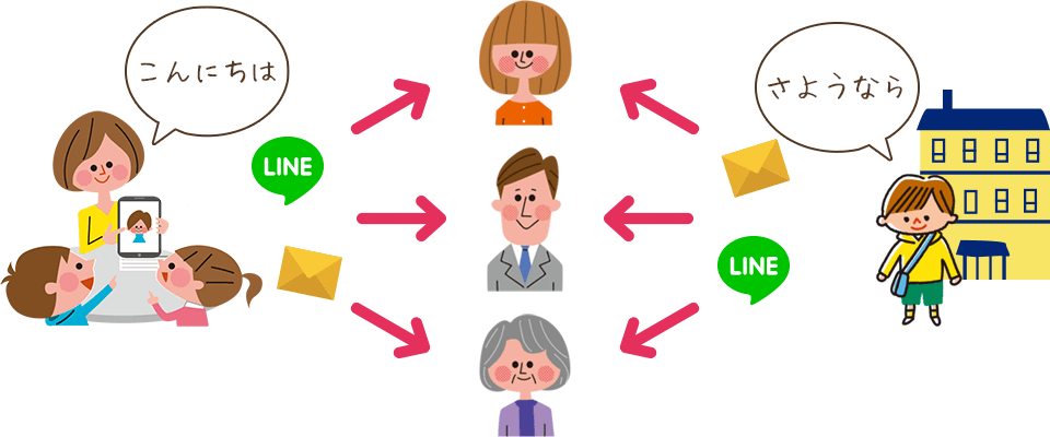 写真付きお知らせをメールとLINEに送れます